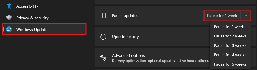 - Select Pause updates