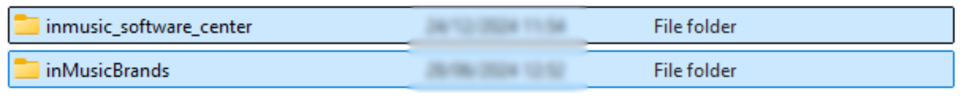 - inmusic_software_centerとinMusicBrandsのフォルダを見つけます。